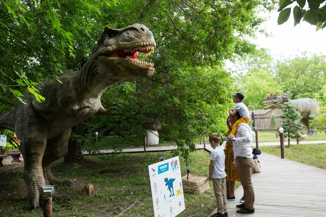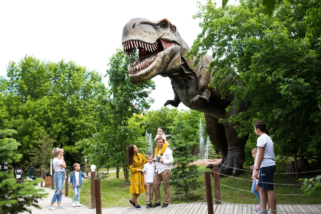 Экскурсия предлагает совершить увлекательное путешествие во времени, в эпоху динозавров. Здесь дети могут познакомиться со свирепыми хищниками и безобидными гигантами, которые населяли Землю миллионы лет тому назад. Помимо хищных рептилий, дети могут встретить в нашем парке, животных из Ледникового периода. Причём, абсолютно все модели являются интерактивными, что и привлекает внимание. Все они двигаются подобно своим прародителям. Высота динозавров достигает 30 метров, а длина целых 60.